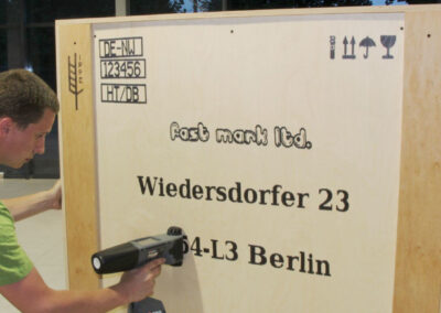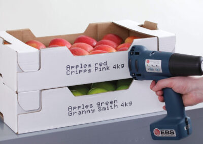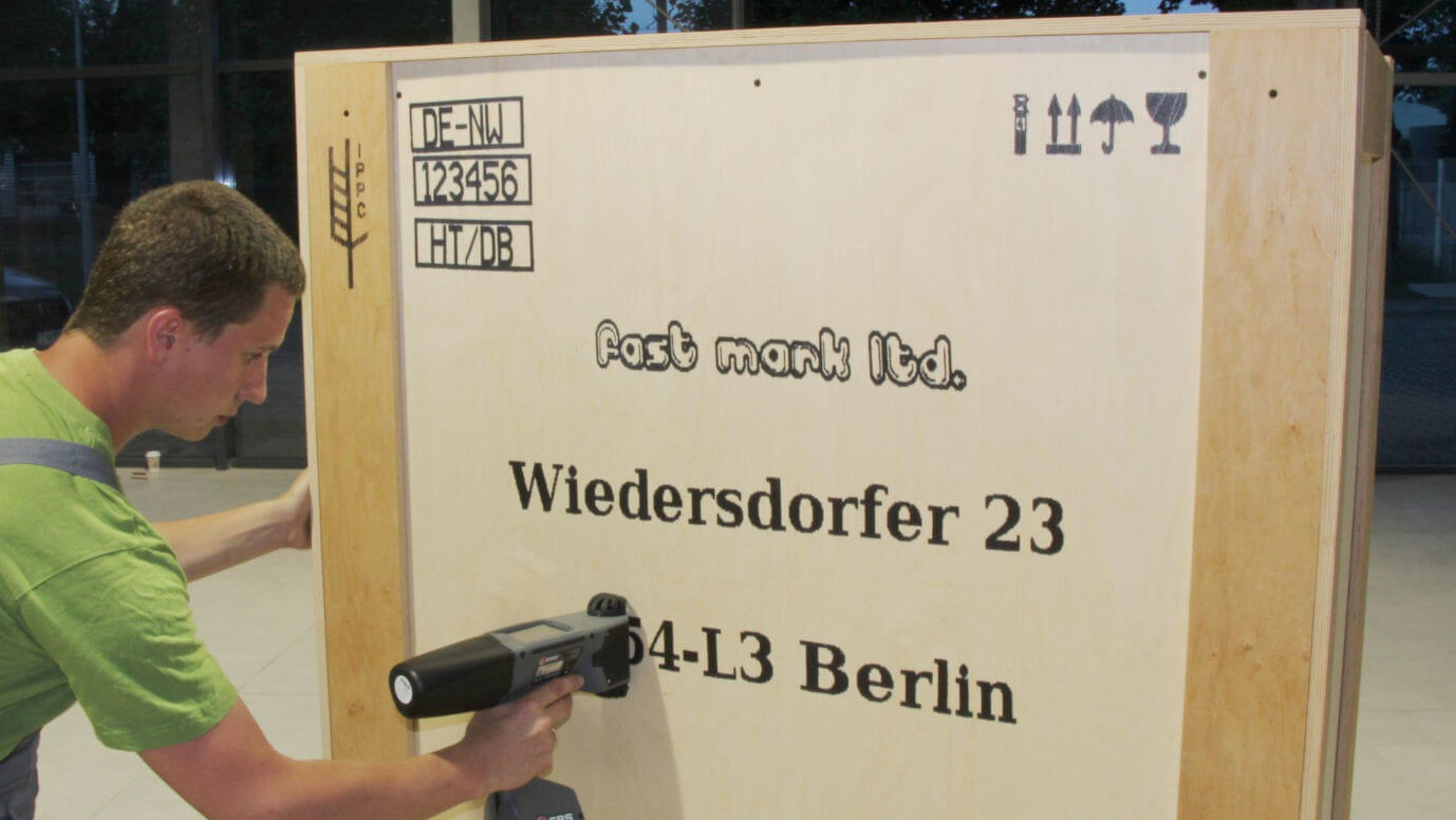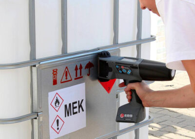 Jeden Tag bewegen sich unzählige Produkte auf Paletten von einem zum anderen Unternehmen.  Hierfür wird ein Großteil dieser Paletten zur besseren Übersicht aufwändig gekennzeichnet. Häufig werden hierzu improvisierte und unleserliche Markierungen aufgebracht. Und genau hier kommen unsere EBS-Produkte ins Spiel: Denn mit unseren Kennzeichnungssystemen ist die sorgfältige Beschriftung von Paletten kein Problem mehr. Egal ob auf Folie, Holz, Metall oder Stein – mit unseren Systemen können die unterschiedlichsten Oberflächen schnell und gut leserlich markiert werden. Egal ob Datum, Charge oder maschinell lesbare Codes – alles kann direkt auf die Palette gedruckt werden.