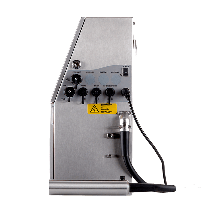 EBS-6800P heißt unser Kennzeichnungssystem, speziell konzipiert für die Verarbeitung pigmentierter Tinten. Er wurde eigens für Anwendungen entwickelt, die sonst aufgrund fehlenden Kontrastes nicht realisierbar wären. Der Kodierer ist ein industrieller Einkopf-Tintenstrahldrucker, der für die berührungslose Kodierung bewegter Objekte auf einem Werksförderband entwickelt wurde. Er hat eine Druckhöhe von 1,2 mm bis 14 mm mit einer maximalen Anzahl von 32 Punkten. Wie alle unsere neuen Systeme benötigt er keine externe Druckluftversorgung!